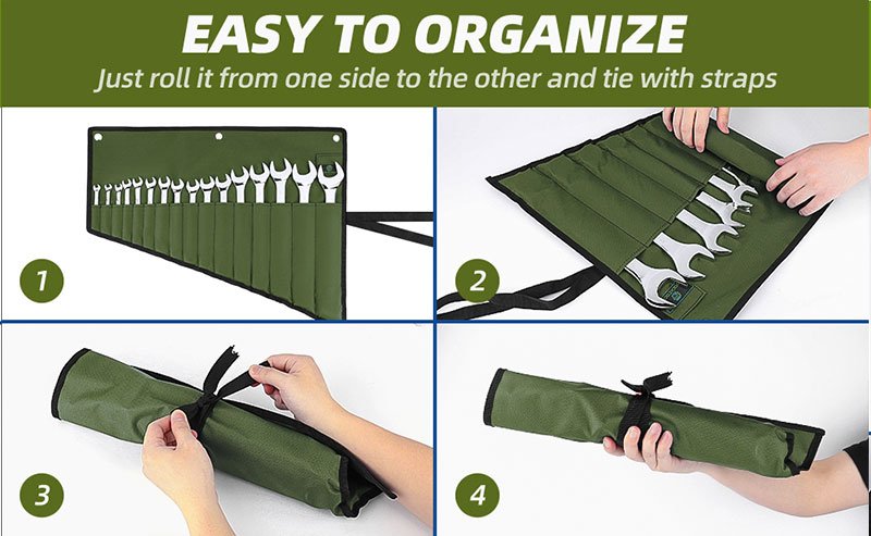• Portable and Lightweight Wrench Tool Roll Bag: Designed for convenience and mobility, this tool bag is portable and lightweight, making it effortless to carry and transport. Its compact size and roll-up design allow for easy storage and transportation to job sites, workshops, or wherever your work takes you. Furthermore, the bag is easy to clean, saving you time and effort in maintaining its cleanliness and keeping your tools in pristine condition.